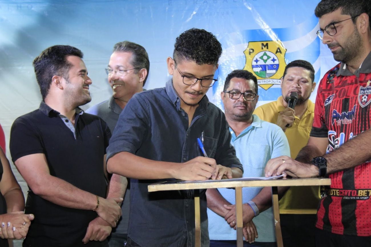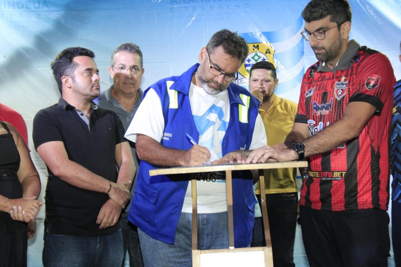 Assinatura da O.S para reforma da praça Jardim Ananin no conjunto Ananin bairro Aurá