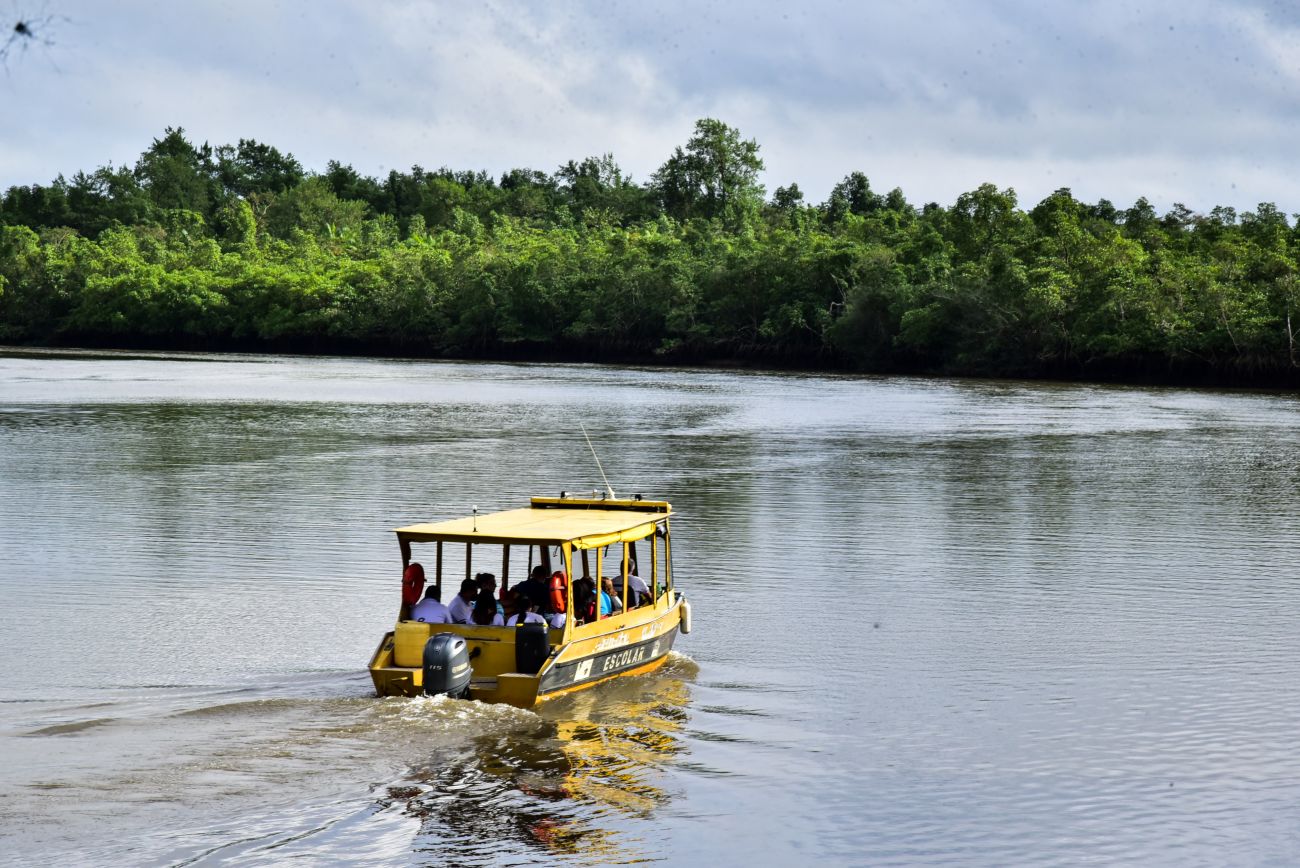 Entrega de material didático e apresentação de projeto na EMEF Domiciano de Farias, Ilha Grande
