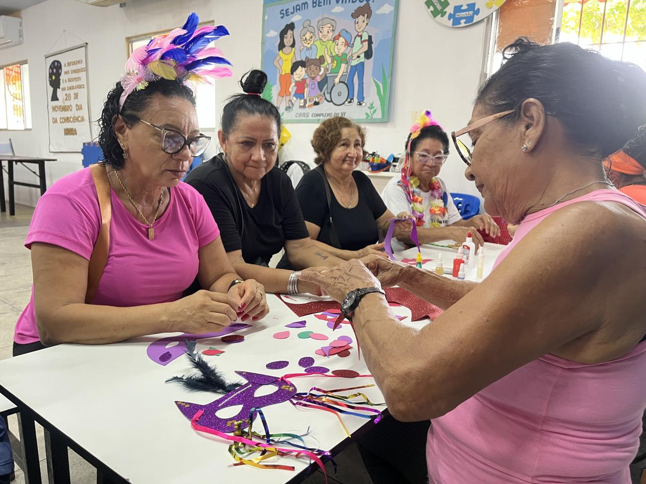 A alegria do Carnaval ganhou um significado ainda mais especial para os idosos atendidos pelo CRAS Complexo do VI, que participaram, na manhã desta terça-feira (10), de uma oficina de confecção de máscaras carnavalescas. A atividade reuniu cores, criatividade e, principalmente, momentos de convivência, troca de experiências e fortalecimento de vínculos.