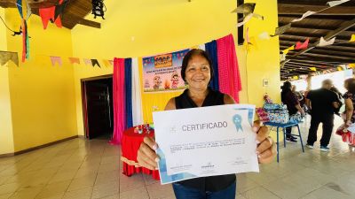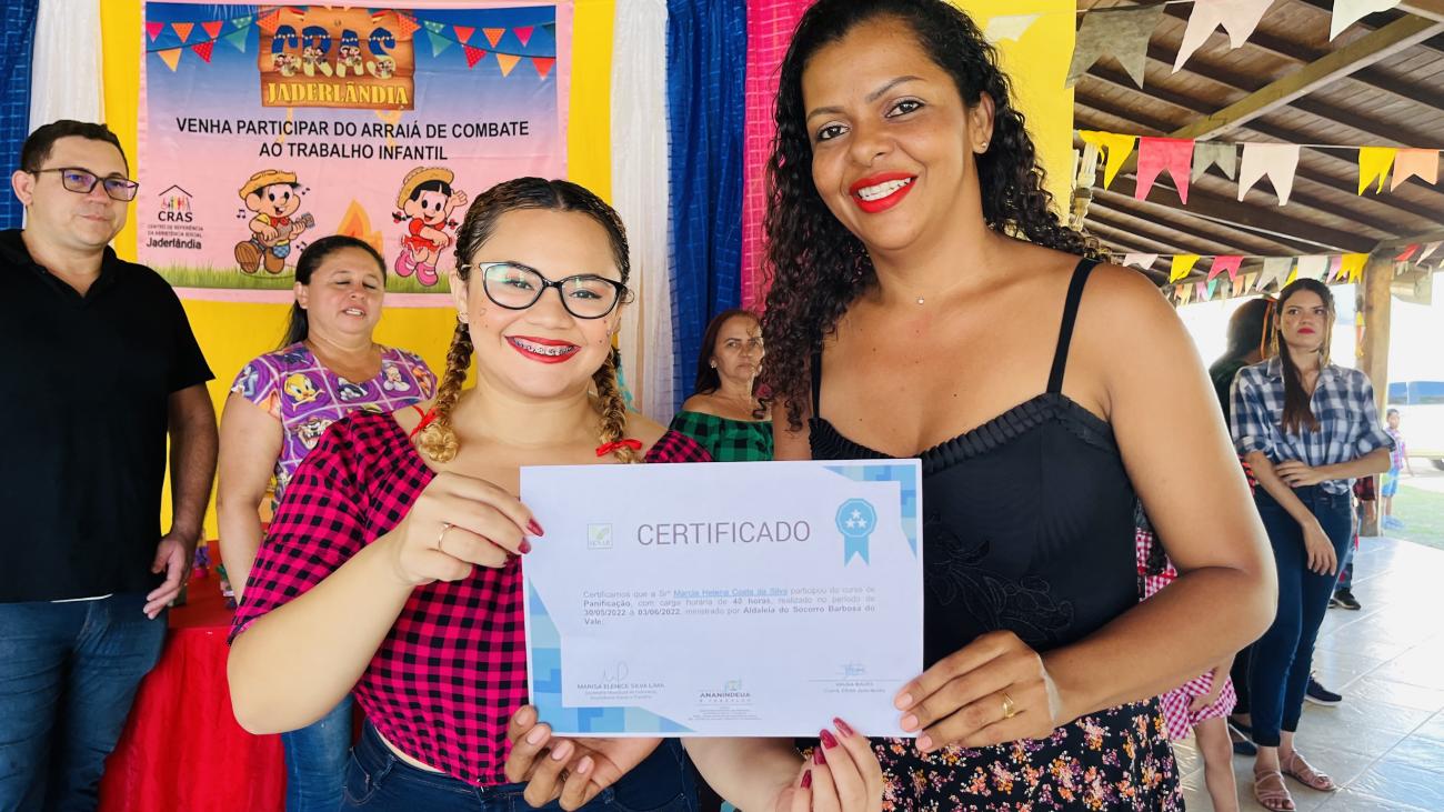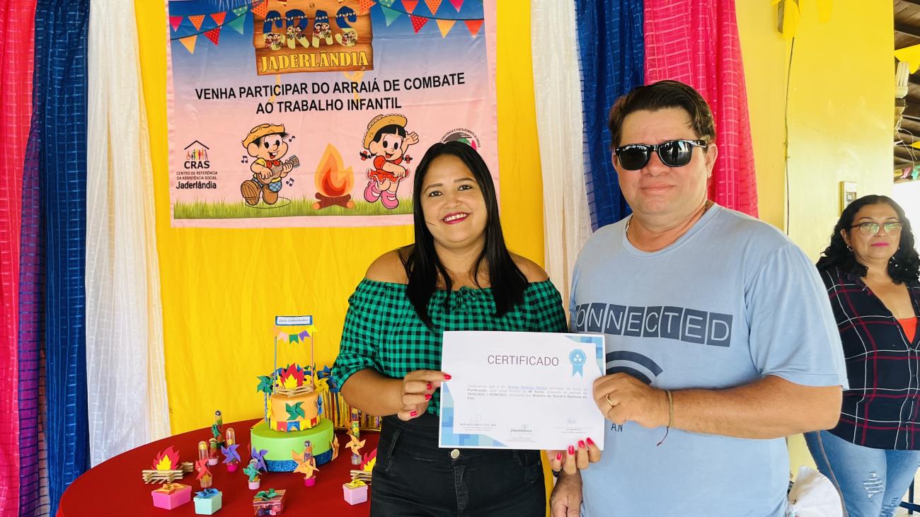 Durante a entrega dos certificados, o CRAS Jaderlândia proporcionou um momento de lazer e fortalecimento de vínculos entre as famílias atendidas na unidade, com desfiles de miss e brincadeiras, além de uma palestra sobre a campanha de combate ao trabalho infantil.