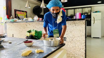 O curso também contou com a participação da Mari Sousa, de 46 anos, que veio do Maranhão para se qualificar na área de panificação. “Sou de Apicom-açu, no Maranhão, e durante alguns períodos do ano venho visitar minha irmã que mora aqui em Ananindeua. Então ela descobriu que teria esse curso e me avisou, como sempre quis me qualificar e aprender mais técnicas para acrescentar na minha venda, pois trabalho com panificação há 5 anos, mas principalmente com doces. Então aproveitei e juntei o útil com agradável, tô visitando a minha irmã e fazendo um curso de qualificação totalmente de graça. Sou muito grata pela oportunidade que a Prefeitura de Ananindeua está me dando. Muito obrigada”.