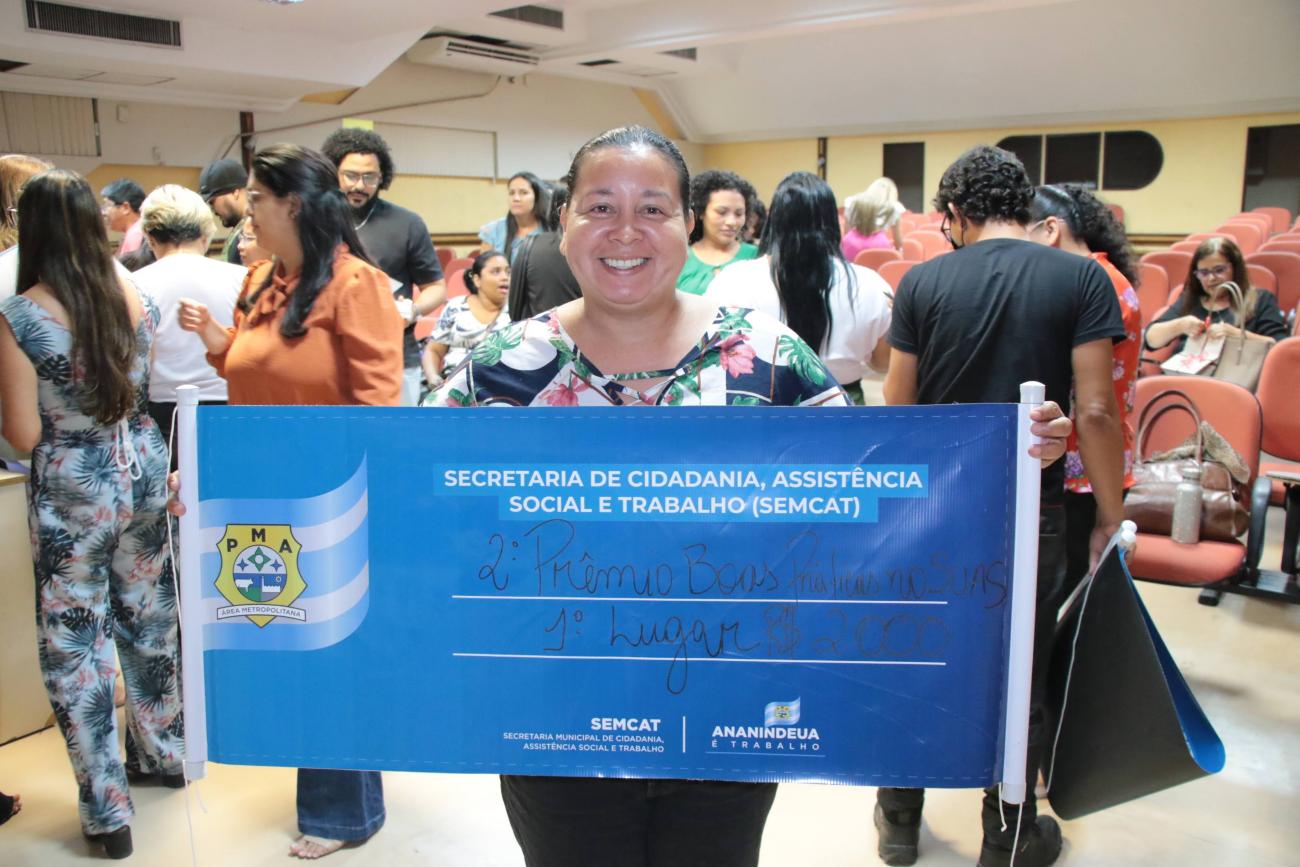 Priscila Sarquis, do CRAS Santana do Aurá, ficou em primeiro lugar.O primeiro lugar ficou com o trabalho apresentado por Priscila Sarquis, do CRAS Santana do Aurá, que comemorou emocionada.