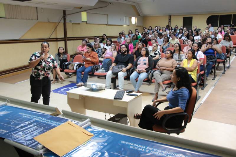 Com o tema “Trabalho Social com Famílias em Situação de Violências e Violação de Direitos”, o encontro reuniu coordenadores(as), técnicos(as), educadores(as), facilitadores(as) e estagiários(as) obrigatórios(as) da rede socioassistencial do município.
