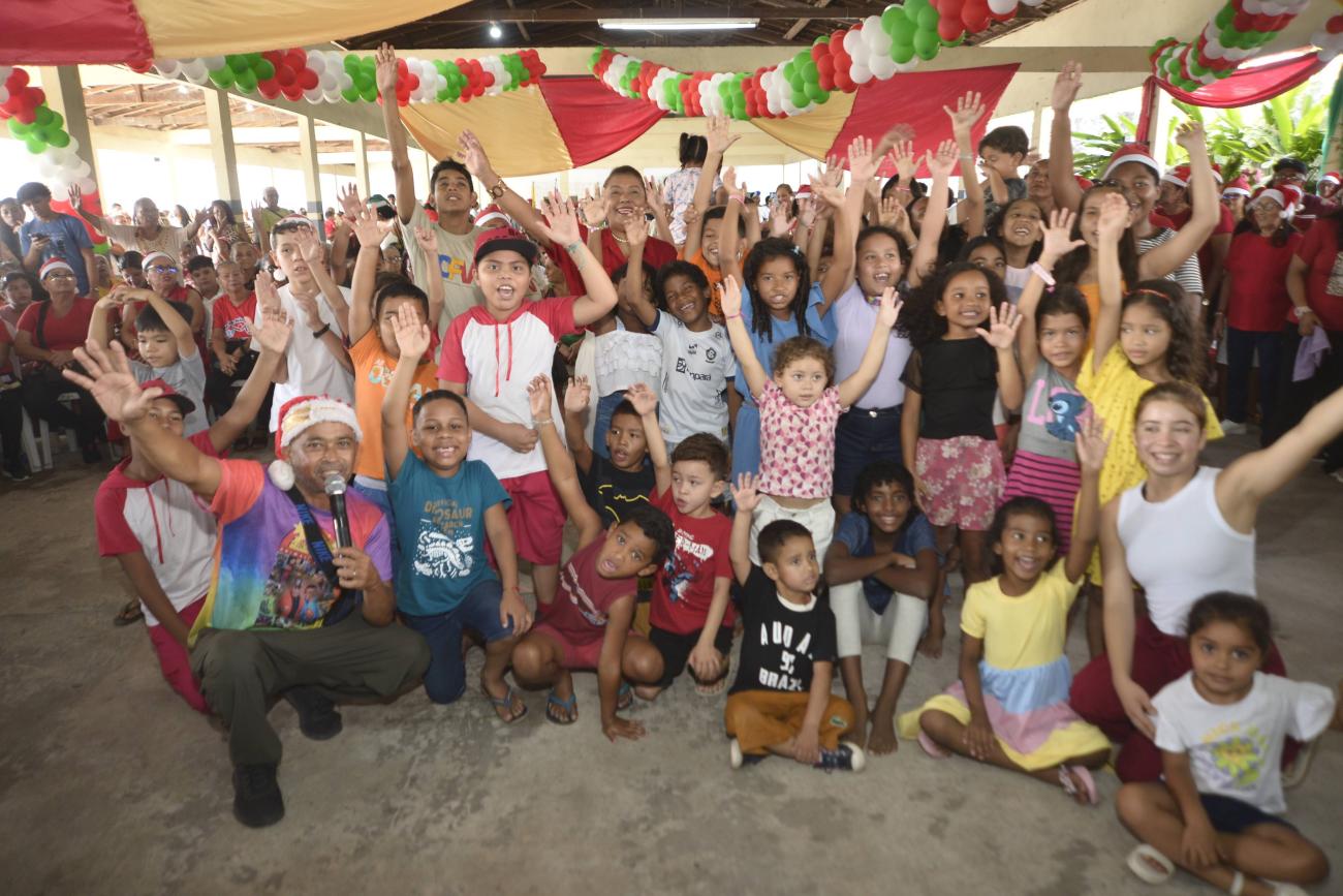 A celebração contou com fanfarra em ritmo carnavalesco, músicas natalinas, personagens animados e a presença do Papai Noel, que espalhou alegria e encantamento entre o público. As apresentações culturais emocionaram e reforçaram o sentimento de pertencimento, com o Coral dos Idosos (CRAS Distrito e 40H), Coral Natalino e Jogral (CRAS Daniel Reis), Coral InterCRAS (Curuçambá e Complexo) e a apresentação de carimbó do CRAS Guanabara.