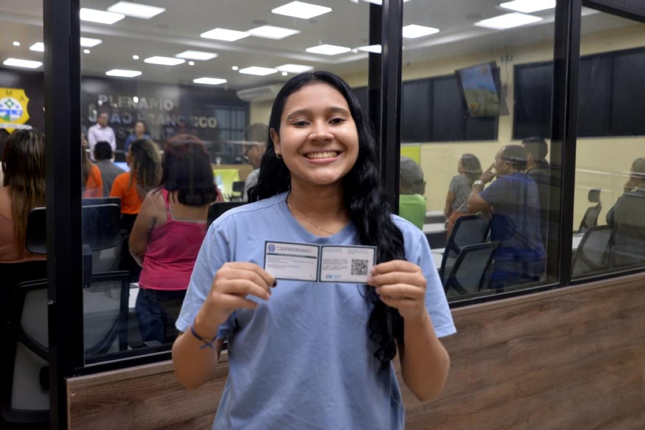 Pérola Brito, estudante e moradora de Ananindeua.Entre os agricultores beneficiados esteve Pérola Brito, estudante e moradora do Curuçambá, que destacou o significado do documento para sua trajetória como produtora rural.