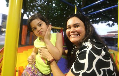 Leda Arruda, moradora da região, com sua filha, Ana Cantão, "Agora temos um lugar seguro para passear e trazer nossos filhos".Moradores da Cidade Nova 4 celebraram a entrega do novo equipamento público. Leda Arruda, moradora há mais de 40 anos do bairro, destacou a importância da praça para a comunidade. “Este espaço ficou muito bonito. Agora temos um lugar seguro para passear e trazer nossos filhos para brincar. É um benefício importante para todos nós”, disse.
