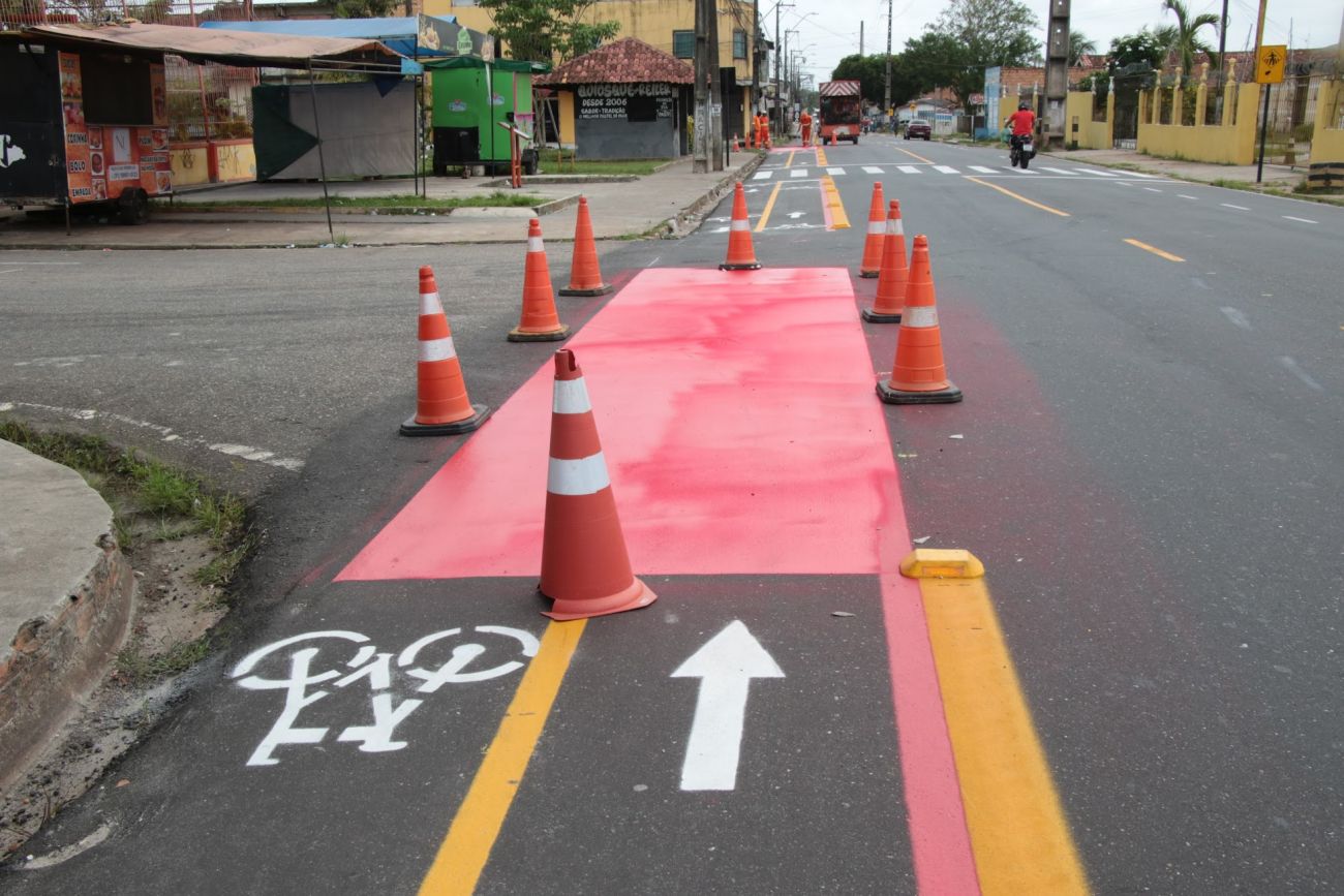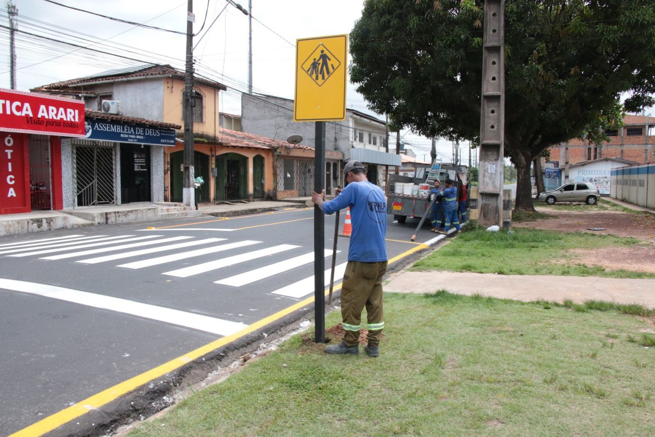 Sinalização viária na avenida Solimões no bairro PAAR