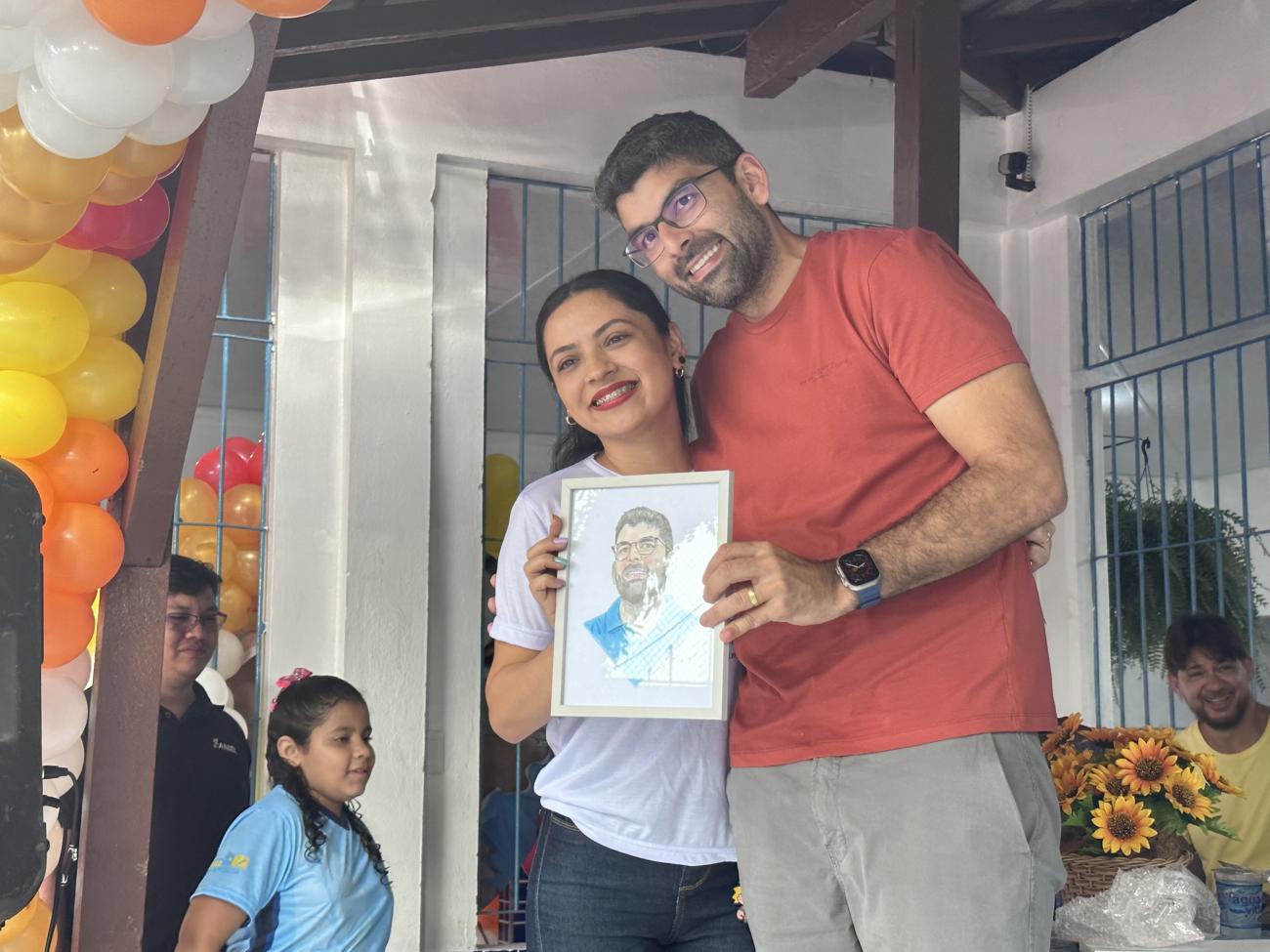 Inspetora da EMEF Júlia Barbalho, a artista Wanessa do Mar fez um desenho de caricatura do prefeito de Ananindeua, Dr Daniel, usando lápis de cor e itens não convencionais para desenhos, como o uso de maquiagens para pele humana. “Como eu já trabalho como desenhista há alguns anos, pensamos nessa homenagem ao prefeito pela reforma da escola”, explicou. A homenagem de Wanessa foi entregue ao prefeito pelas mãos da aluna Jenifer, da turma do 5º ano.