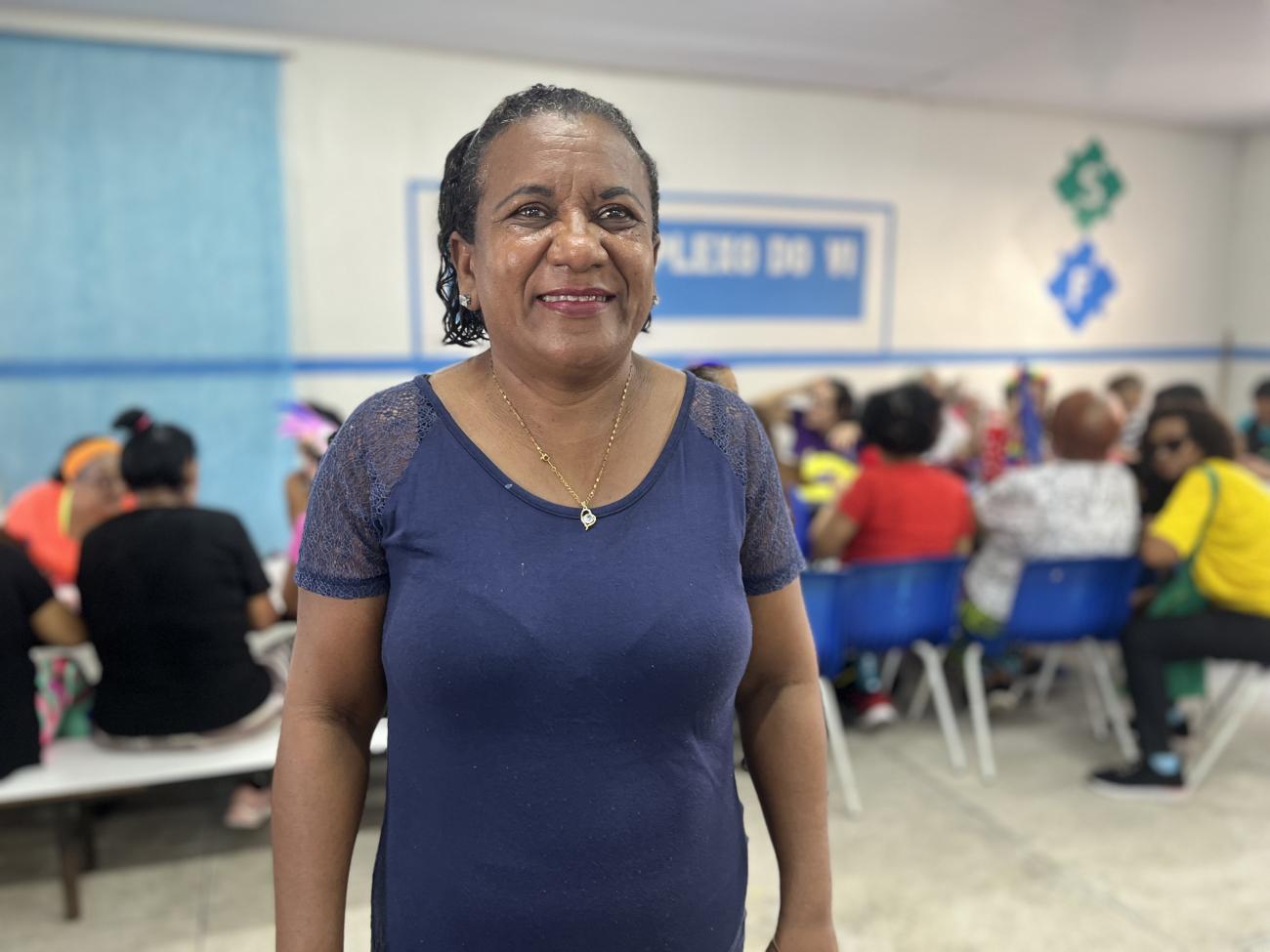 Iara Santos, de 59 anos.Para muitos idosos, ações como essa representam uma quebra da rotina, combatem o isolamento social e reforçam o sentimento de pertencimento ao grupo.