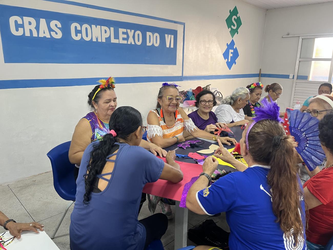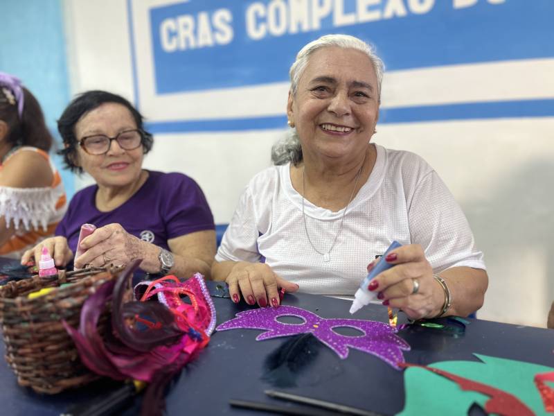 A alegria do Carnaval ganhou um significado ainda mais especial para os idosos atendidos pelo CRAS Complexo do VI, que participaram, na manhã desta terça-feira (10), de uma oficina de confecção de máscaras carnavalescas. A atividade reuniu cores, criatividade e, principalmente, momentos de convivência, troca de experiências e fortalecimento de vínculos.
