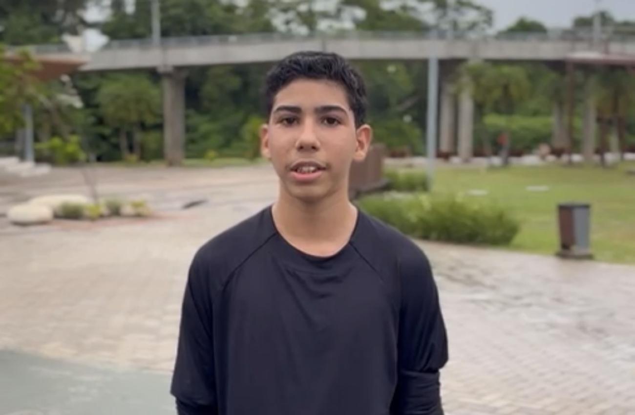 Davi Luís, frequentador do parque. O estudante Davi Luís, de 13 anos, aproveita o fim de tarde nublado para correr no parque. “Fazendo chuva ou fazendo sol, muitas pessoas, assim como eu, frequentam o parque. Muitas pessoas vêm treinar, se exercitar e também aproveitar esse lugar lindo em Ananindeua”, contou.