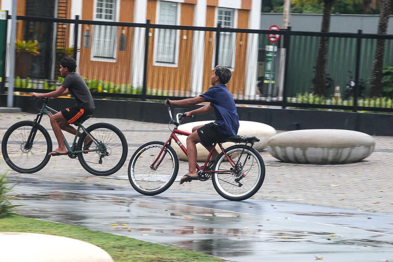 Mesmo com o céu nublado, moradores mantém a rotina de exercícios e transformam a chuva em aliada da vida saudável
