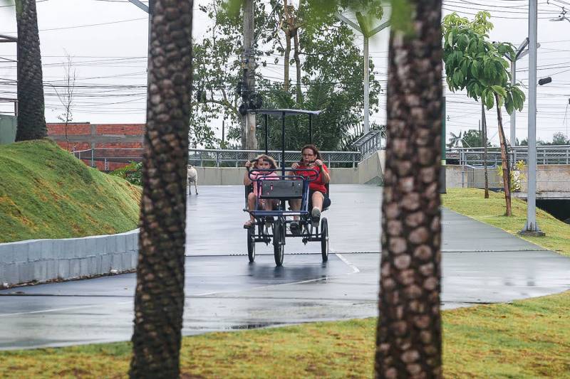 Parque Cultural Vila Maguary em Ananindeua.Em uma região onde a chuva faz parte da rotina durante boa parte do ano, o tempo fechado está longe de ser motivo para ficar em casa. Entre uma garoa e outra, frequentadores do Parque Cultural Vila Maguary seguem comparecendo no espaço para caminhar, correr e cuidar da saúde.