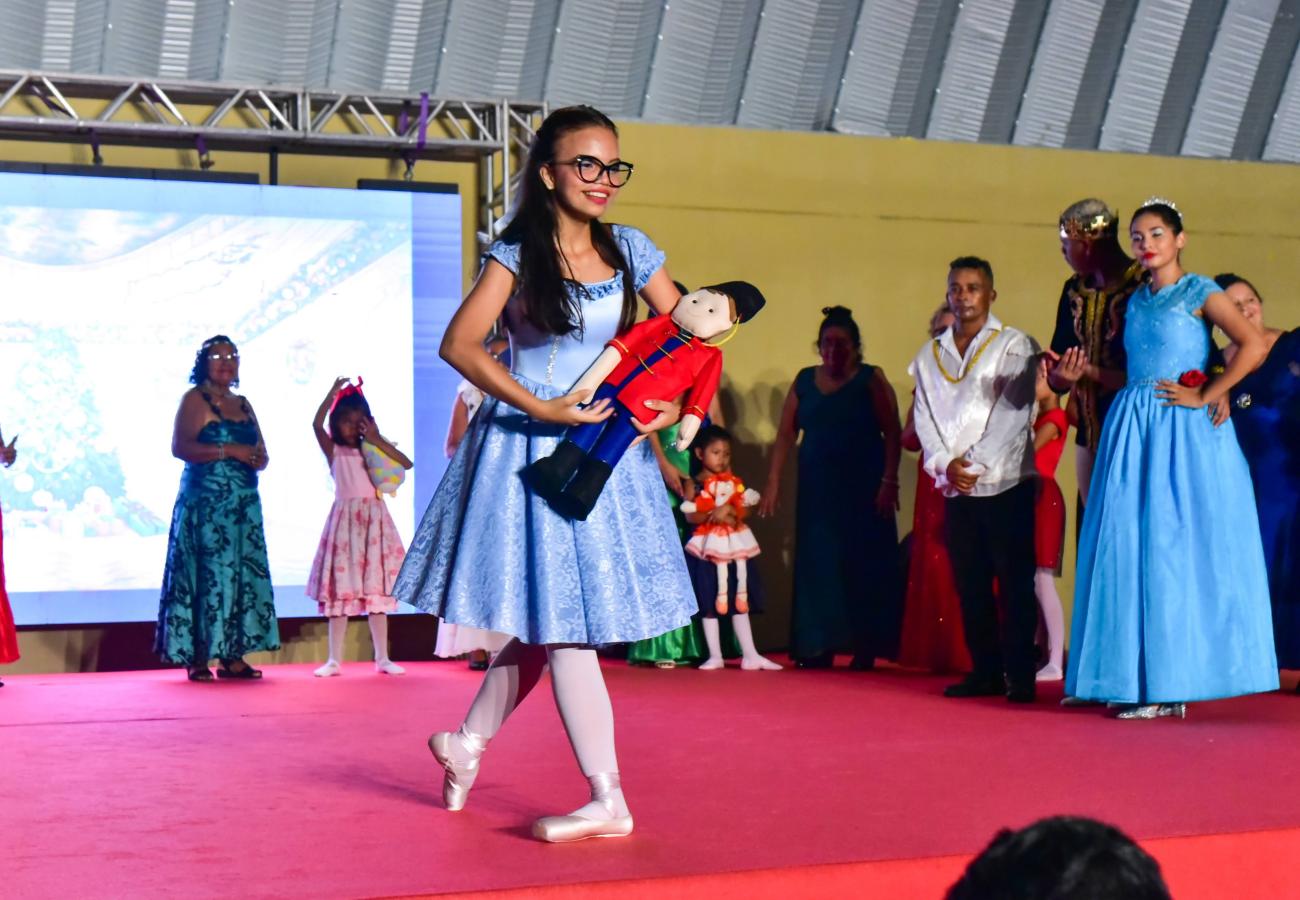 Com os olhos fixos no palco e com sorriso no rosto, crianças, adultos e idosos atendidos pelos Centros de Referência de Assistência Social (CRAS) de Ananindeua se emocionaram ao assistir uma das mais belas e tradicionais histórias do Natal, o espetáculo “O Quebra-nozes”. O evento, promovido pela Prefeitura Municipal, por meio da Secretaria de Cidadania, Assistência Social e Trabalho (Semcat), ocorreu na última sexta-feira (17) no ginásio da Usina da Paz, no bairro Icuí, e levou a magia do Natal às famílias.