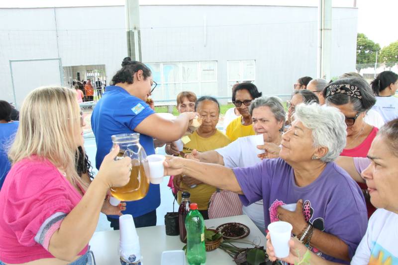Durante a programação, as participantes dialogaram sobre empoderamento feminino, direitos das mulheres e saúde natural, em um momento que reuniu conhecimento técnico e saberes tradicionais transmitidos de geração em geração.